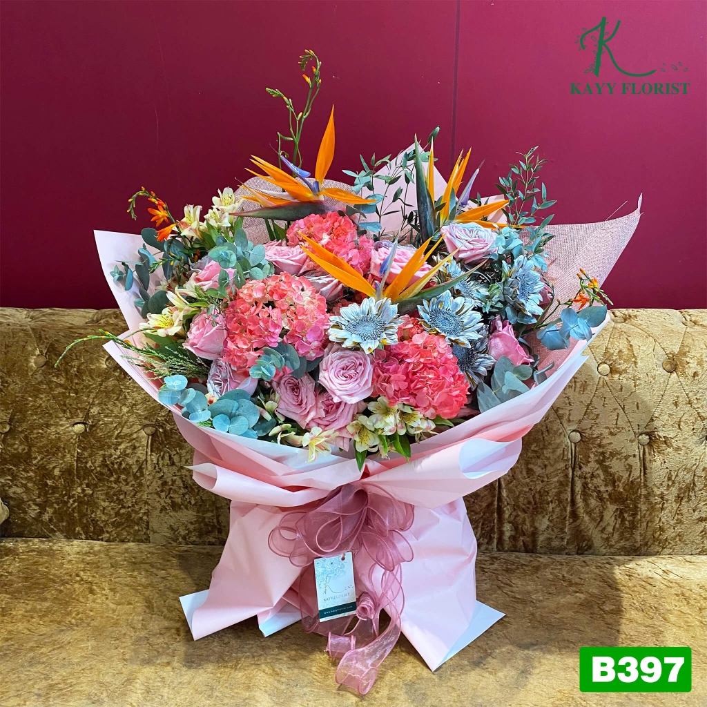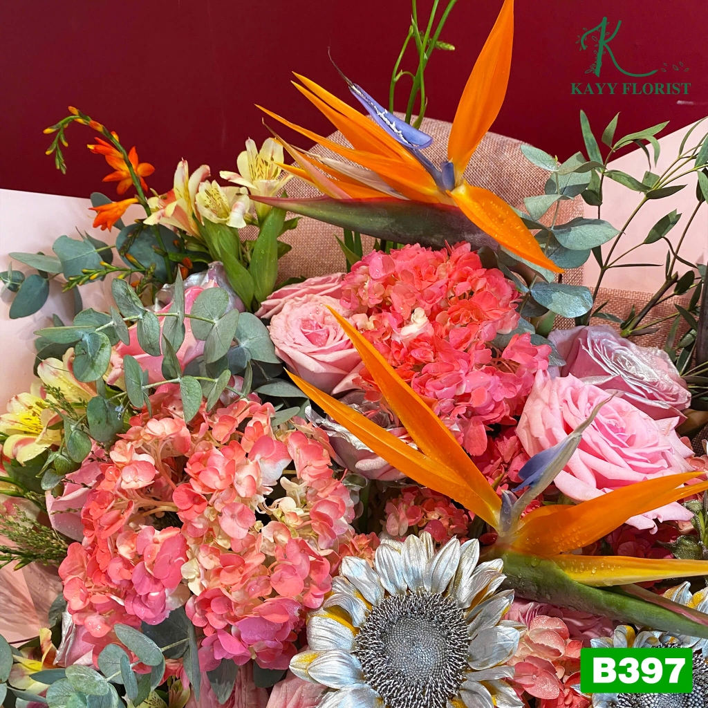 Cẩm tú cầu, hoa hồng, hướng dương, lá bạc, thiên điểu, ...