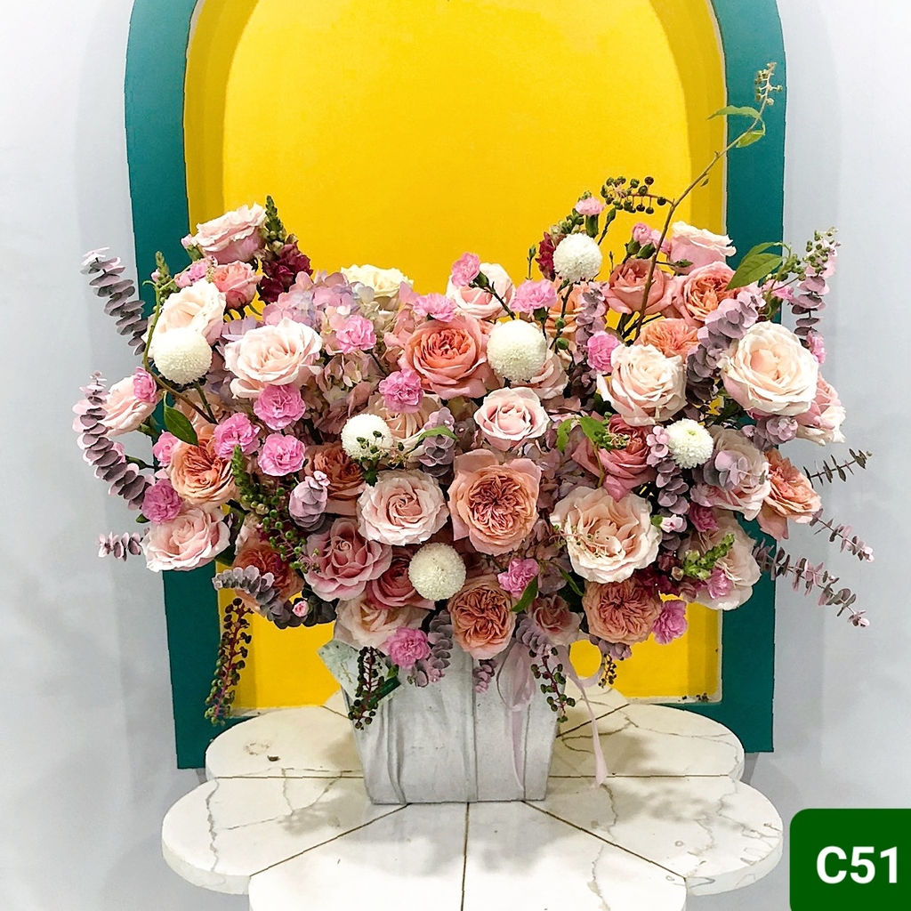 - Sản phẩm thực tế có thể khác hình mẫu đôi chút do đặc tính cắm hoa thủ công. Và mùa hoa (màu sắc, độ nở của bông hoa, các loại hoa lá phụ) nhưng vẫn đảm bảo đúng tính thẩm mỹ và giá trị sản phẩm.