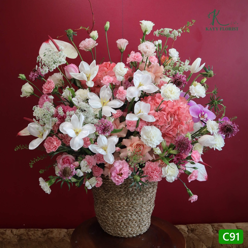 - Sản phẩm thực tế có thể khác hình mẫu đôi chút do đặc tính cắm hoa thủ công. Và mùa hoa (màu sắc, độ nở của bông hoa, các loại hoa lá phụ) nhưng vẫn đảm bảo đúng tính thẩm mỹ và giá trị sản phẩm.