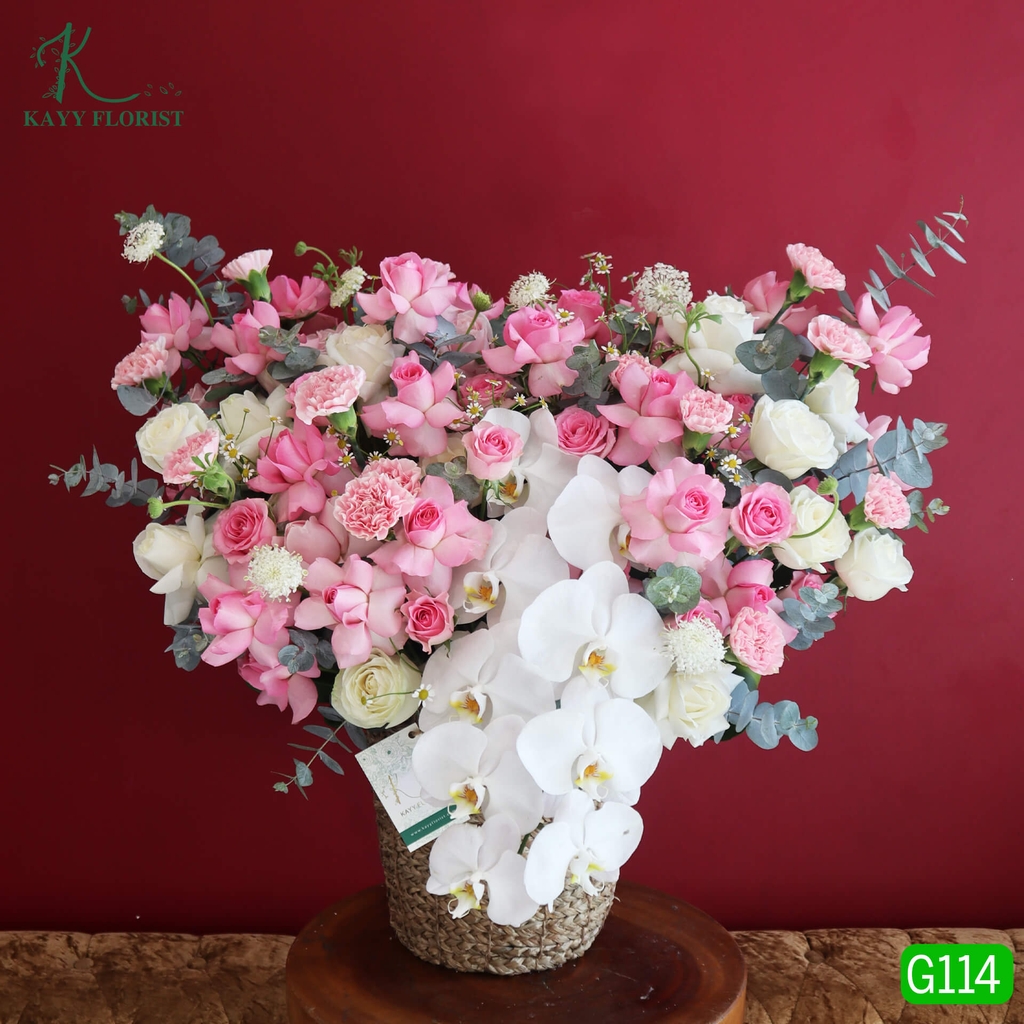 - Sản phẩm thực tế có thể khác hình mẫu đôi chút do đặc tính cắm hoa thủ công. Và mùa hoa (màu sắc, độ nở của bông hoa, các loại hoa lá phụ) nhưng vẫn đảm bảo đúng tính thẩm mỹ và giá trị sản phẩm.